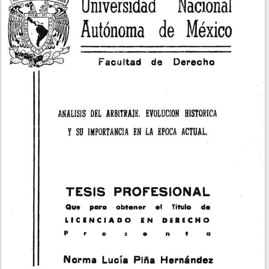 En 1984, Norma Lucía Piña Hernández se tituló con la tesis “Análisis del arbitraje. Evolución histórica y su importancia en la época actual”, de la cual no se ha encontrado otro trabajo con el mismo título, esto luego de la polémica alrededor de la Corte.